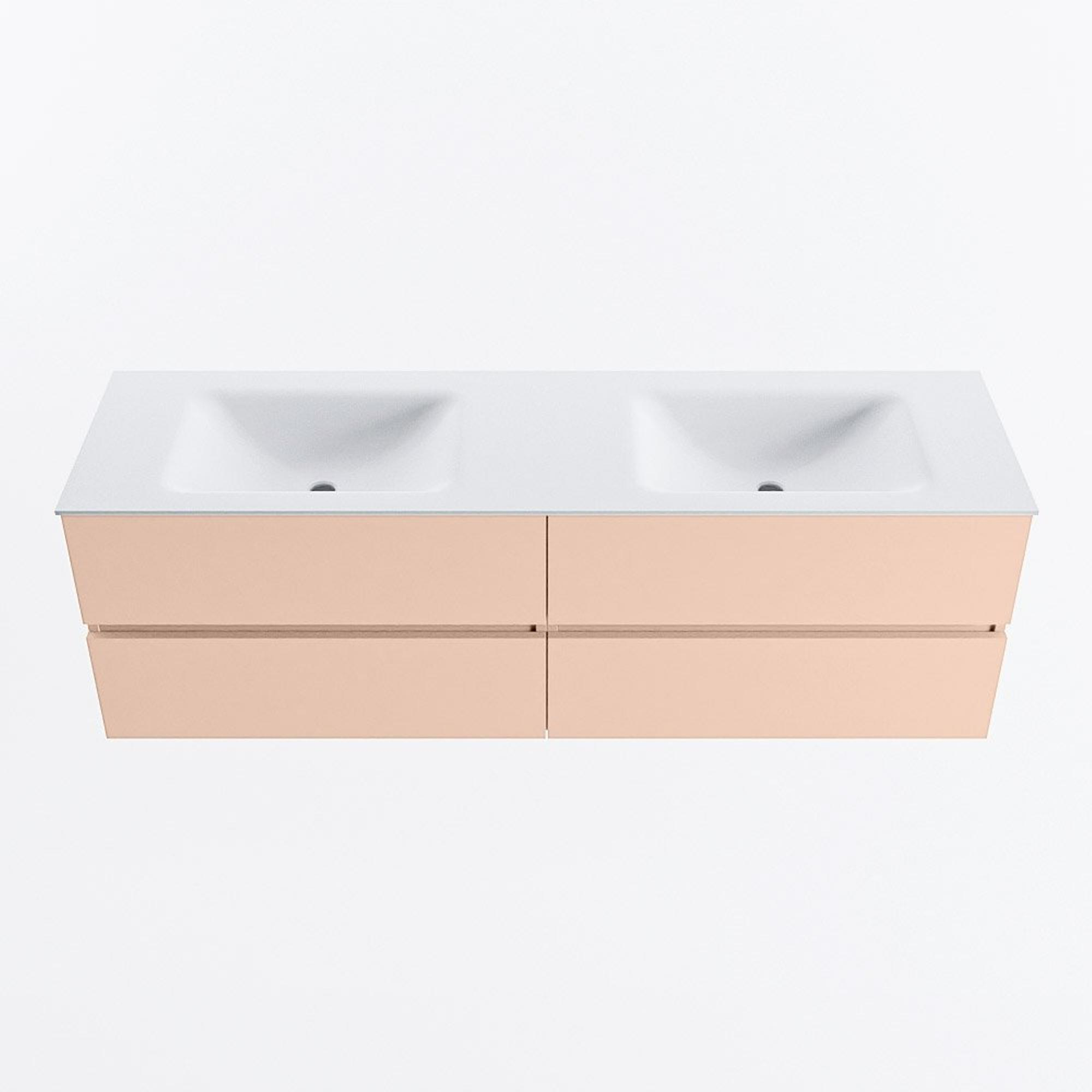 MONDIAZ Vica Badkamermeubelset - 160cm - onderkast rosee - 4 lades - wastafel cloud dubbel - 2 kraangaten - 60cm hoge versie - talc