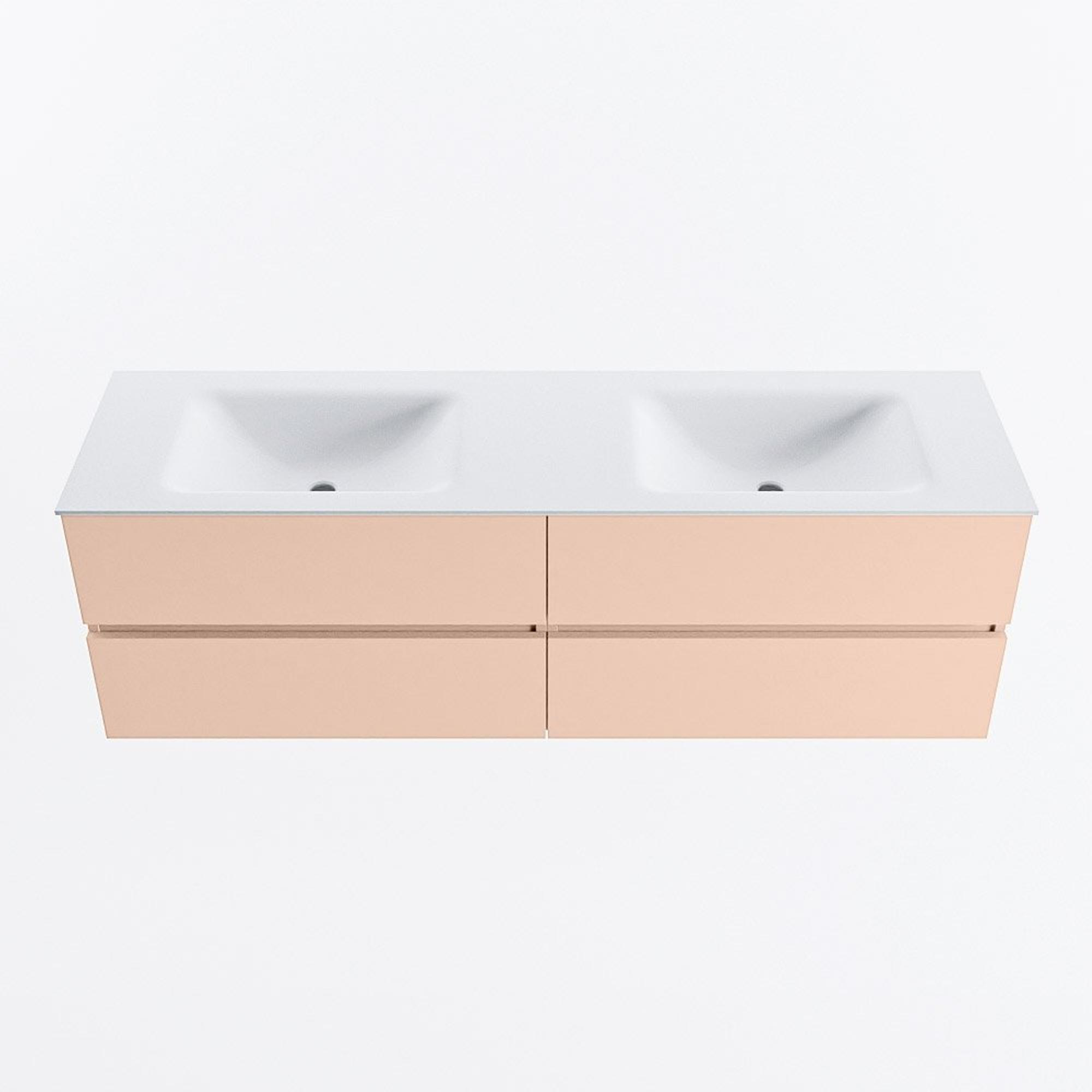 MONDIAZ Vica Badkamermeubelset - 160cm - onderkast rosee - 4 lades - wastafel cloud dubbel - zonder kraangaten - 60cm hoge versie - talc