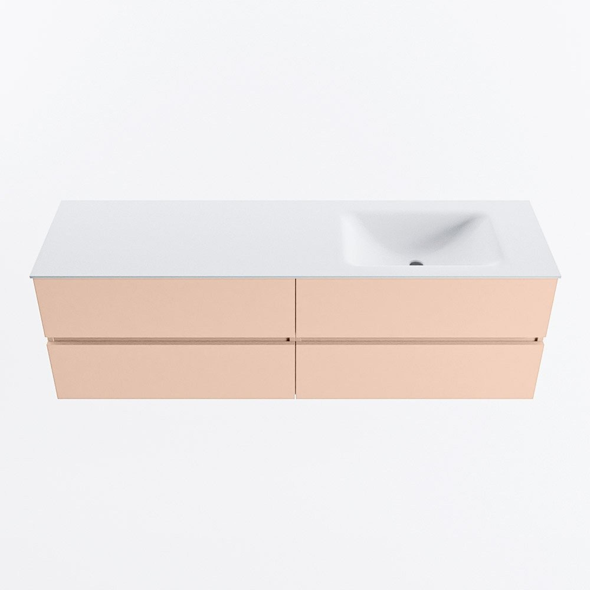 MONDIAZ Vica Badkamermeubelset - 160cm - onderkast rosee - 4 lades - wastafel cloud rechts - 1 kraangat - 60cm hoge versie - talc