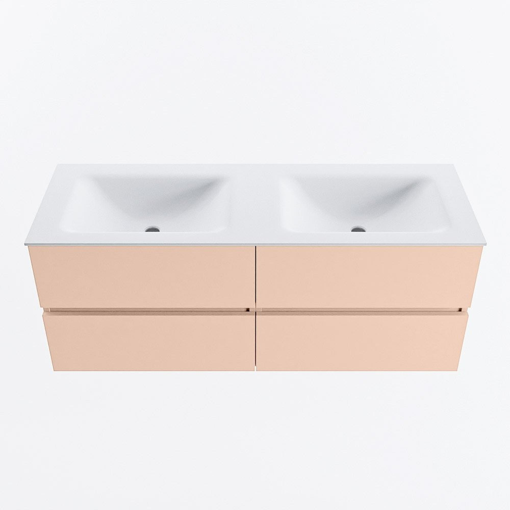 MONDIAZ VICA Badkamermeubelset - 130cm - onderkast rosee - 4 lades - wastafel cloud dubbel - zonder kraangaten - 60cm hoge versie - talc