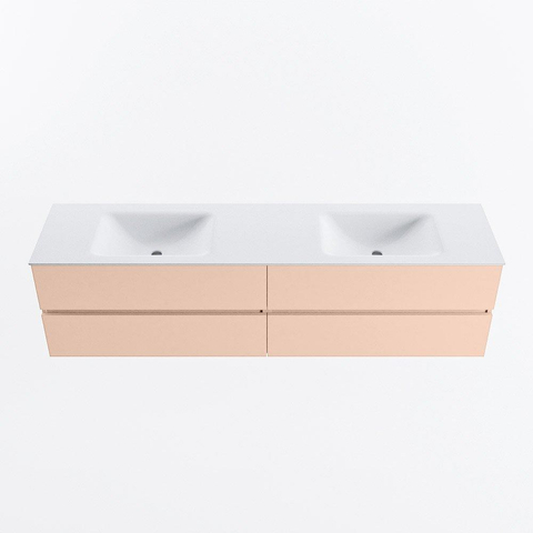 MONDIAZ Vica Badkamermeubelset - 190cm - onderkast rosee - 4 lades - wastafel cloud dubbel - zonder kraangaten - 60cm hoge versie - talc