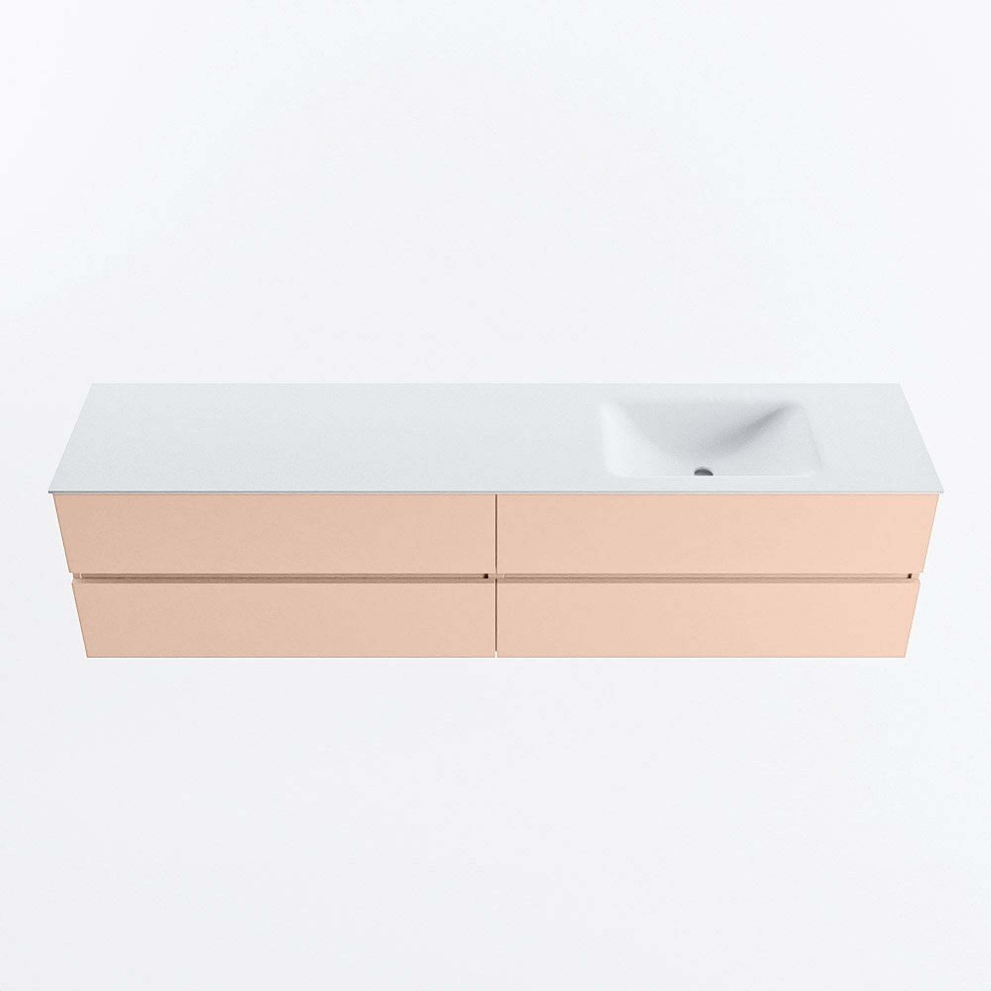 MONDIAZ VICA Badkamermeubelset - 200cm - onderkast rosee - 4 lades - wastafel cloud rechts - zonder kraangaten - 60cm hoge versie - talc