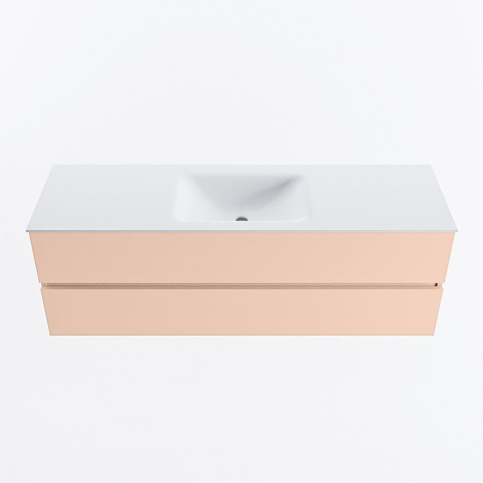 MONDIAZ VICA Badkamermeubelset - 150cm - onderkast rosee- 2 lades - wastafel cloud midden - zonder kraangaten - 60cm hoge versie - talc