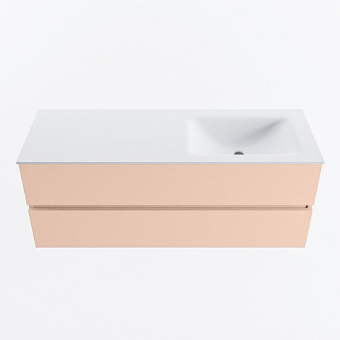 MONDIAZ VICA Badkamermeubelset - 130cm - onderkast rosee- 2 lades - wastafel cloud rechts - zonder kraangaten - 60cm hoge versie - talc