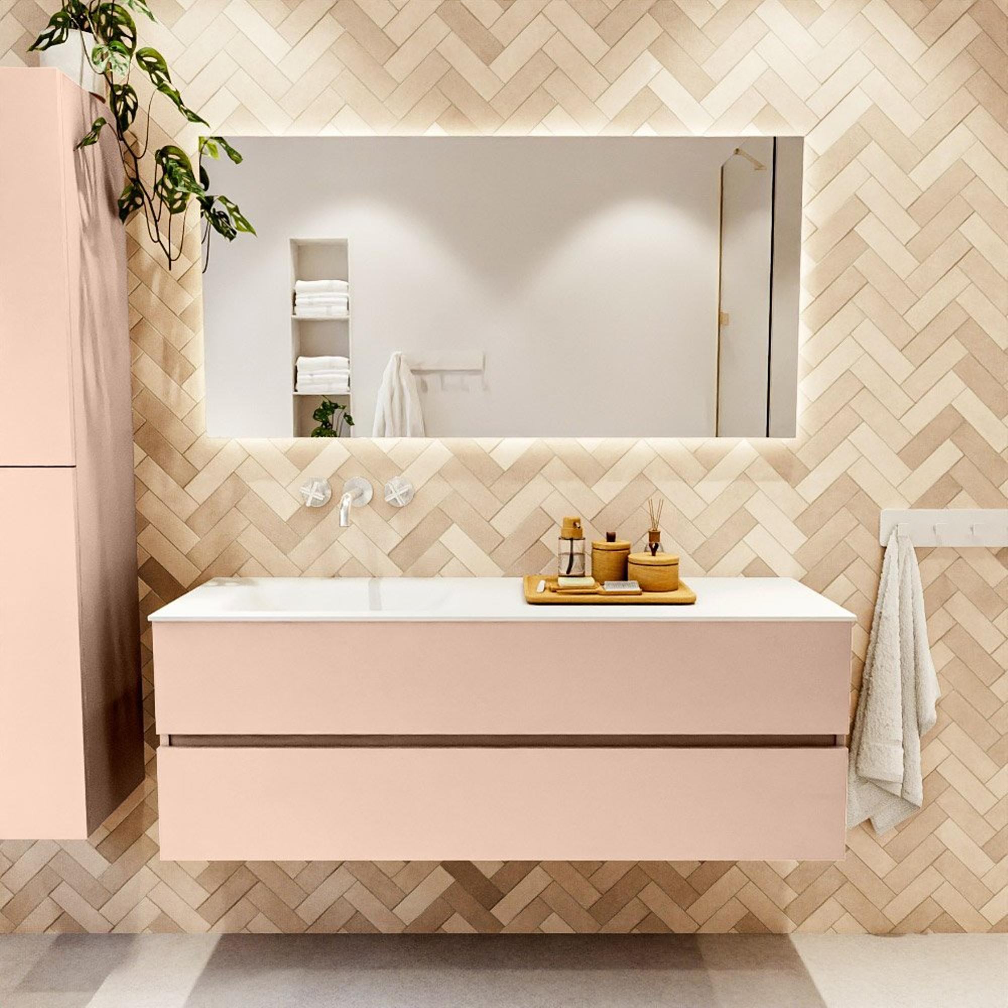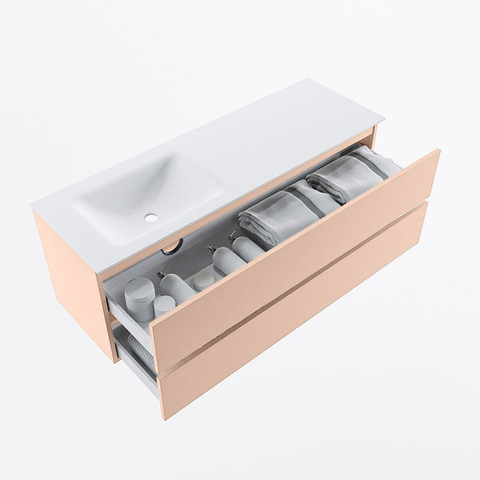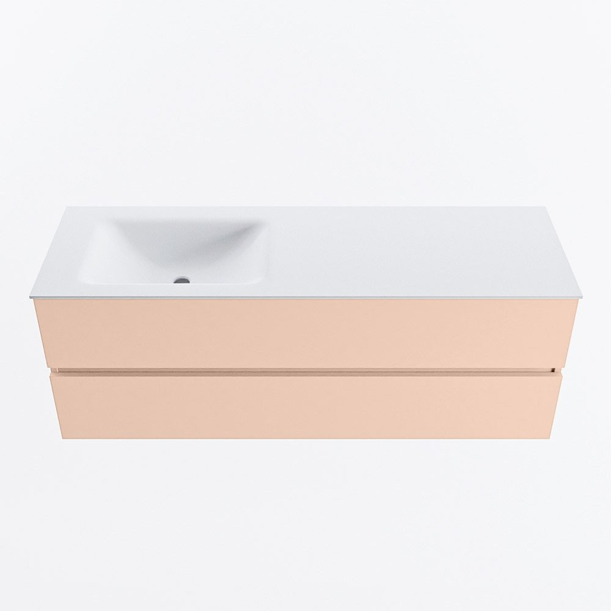 MONDIAZ VICA Badkamermeubelset - 140cm - onderkast rosee- 2 lades - wastafel cloud links - zonder kraangaten - 60cm hoge versie - talc