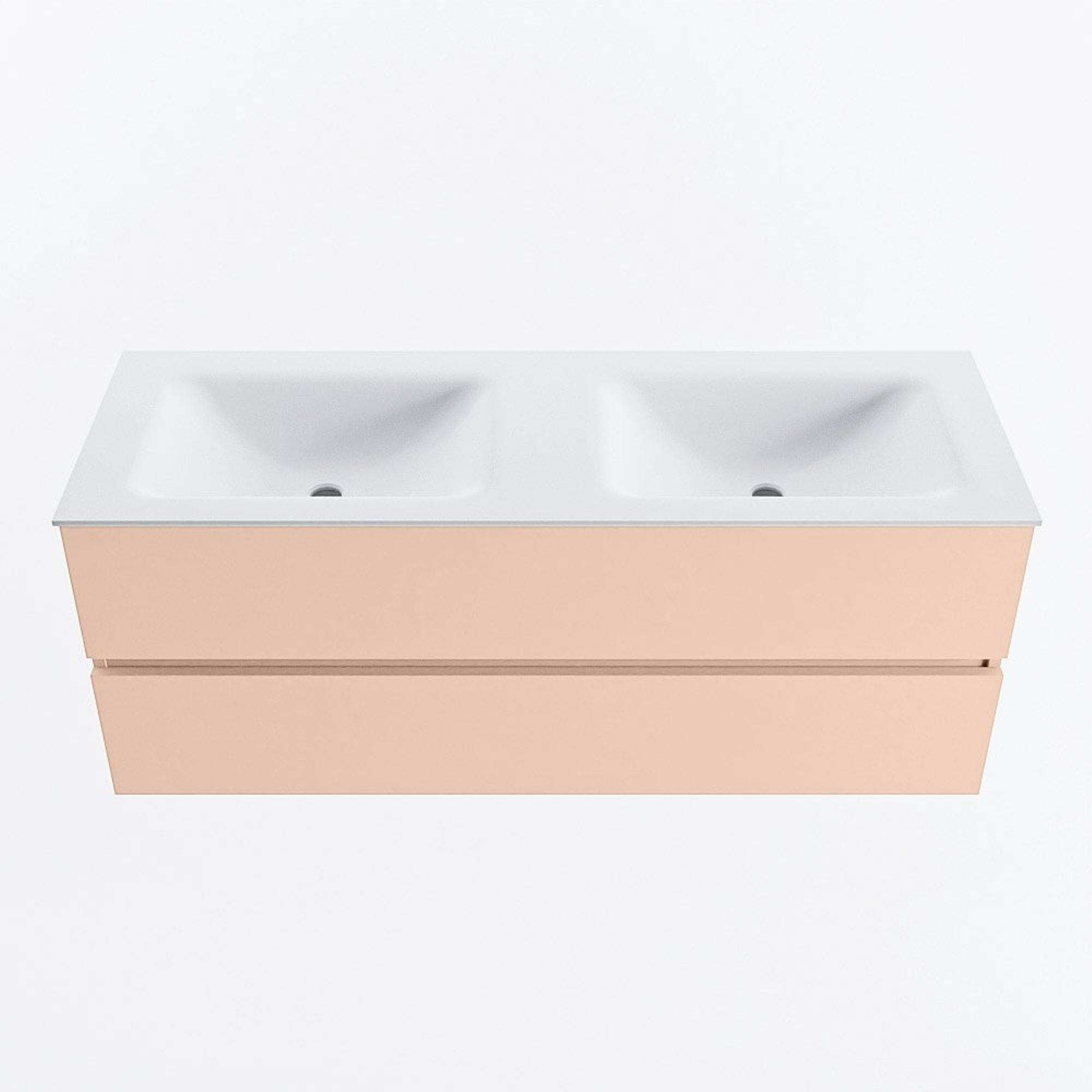 MONDIAZ VICA Badkamermeubelset - 130cm - onderkast rosee- 2 lades - wastafel cloud dubbel - 2 kraangaten - 60cm hoge versie - talc