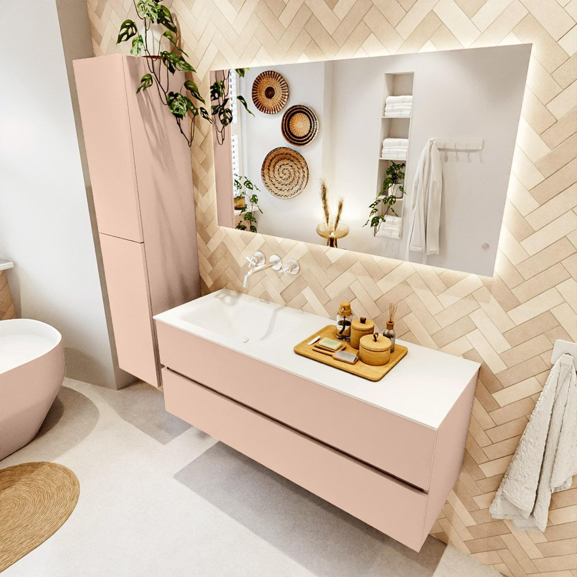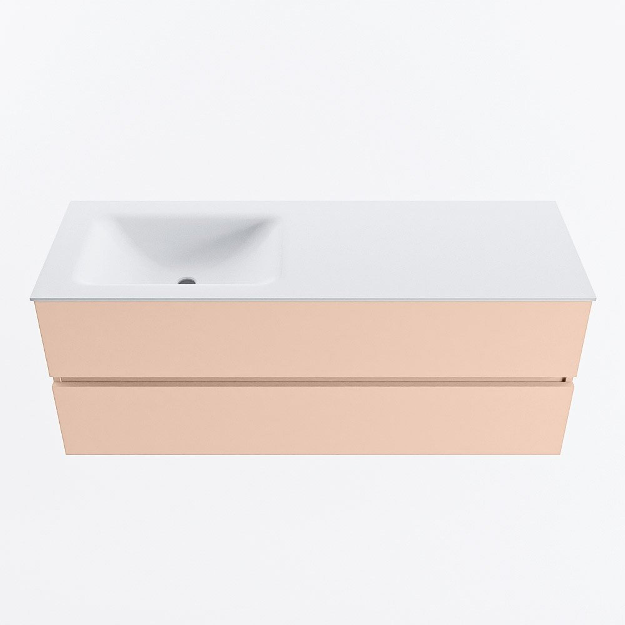 MONDIAZ VICA Badkamermeubelset - 130cm - onderkast rosee- 2 lades - wastafel cloud links - zonder kraangaten - 60cm hoge versie - talc