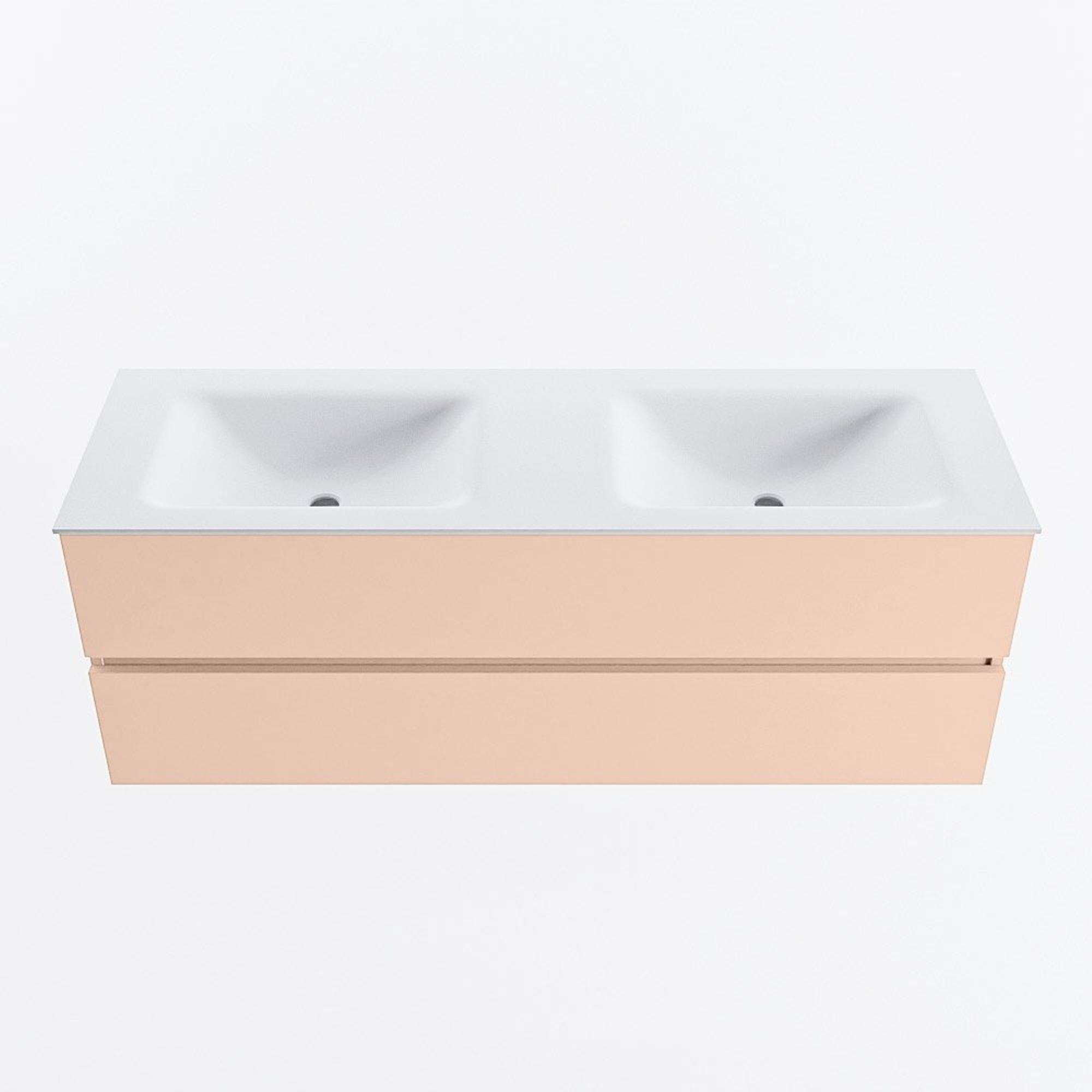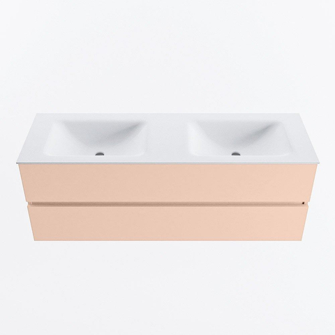 MONDIAZ VICA Badkamermeubelset - 140cm - onderkast rosee- 2 lades - wastafel cloud dubbel - 2 kraangaten - 60cm hoge versie - talc