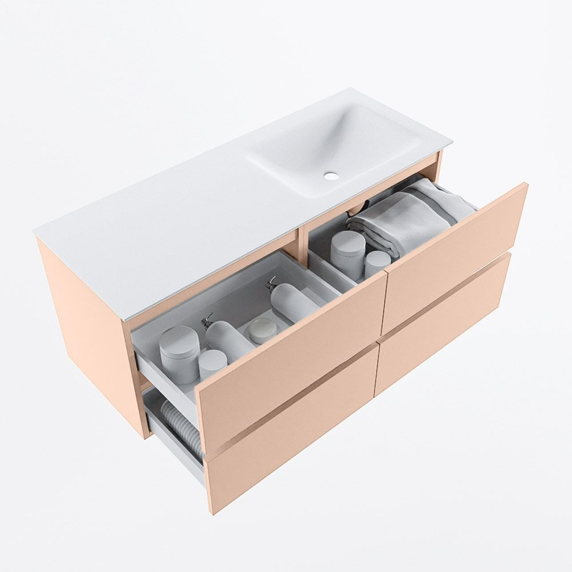 MONDIAZ VICA Badkamermeubelset - 120cm - onderkast rosee - 4 lades - wastafel cloud rechts - 1 kraangat - 60cm hoge versie - talc