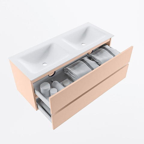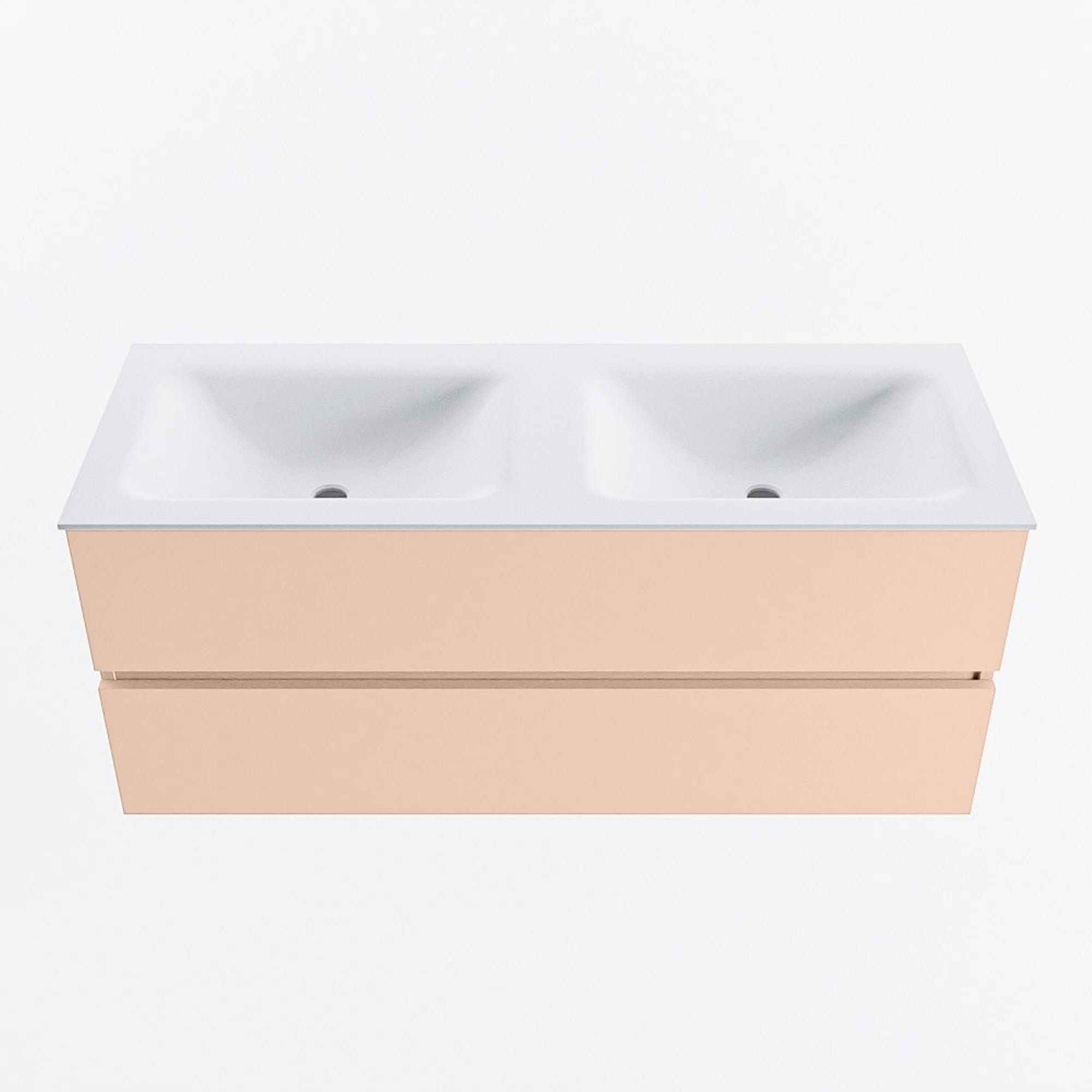 MONDIAZ VICA Badkamermeubelset - 120cm - onderkast rosee- 2 lades - wastafel cloud dubbel - zonder kraangaten - 60cm hoge versie - talc