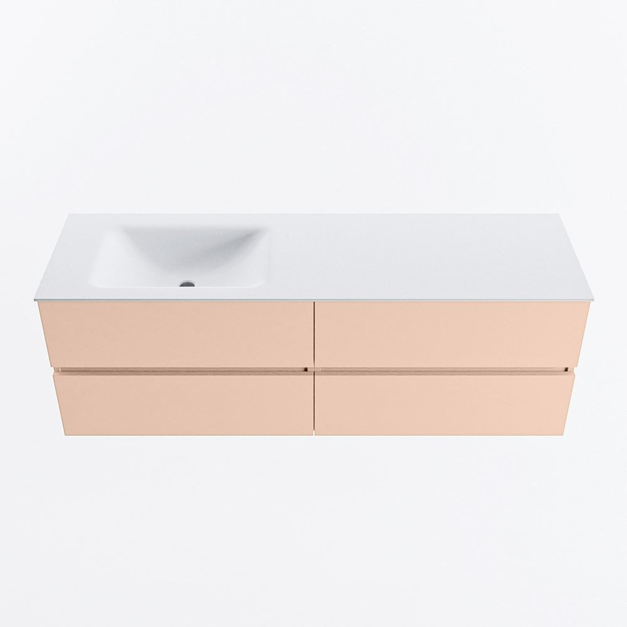 MONDIAZ VICA Badkamermeubelset - 150cm - onderkast rosee - 4 lades - wastafel cloud links - zonder kraangaten - 60cm hoge versie - talc