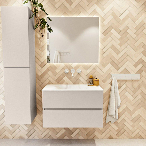 MONDIAZ VICA Badkamermeubelset - 80cm - onderkast linen- 2 lades - wastafel cloud midden - zonder kraangaten - 60cm hoge versie - talc