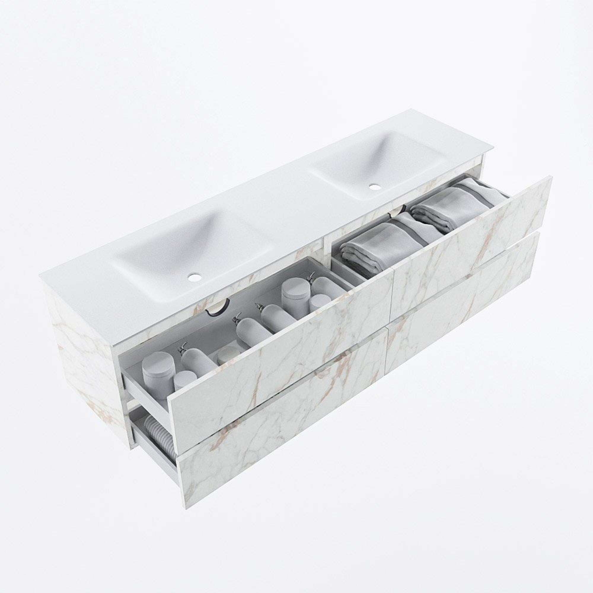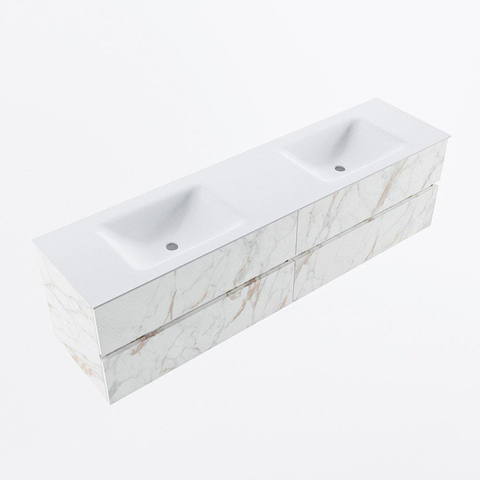 MONDIAZ Vica Badkamermeubelset - 180cm - onderkast carrara - 4 lades - wastafel cloud dubbel - 2 kraangaten - 60cm hoge versie - talc