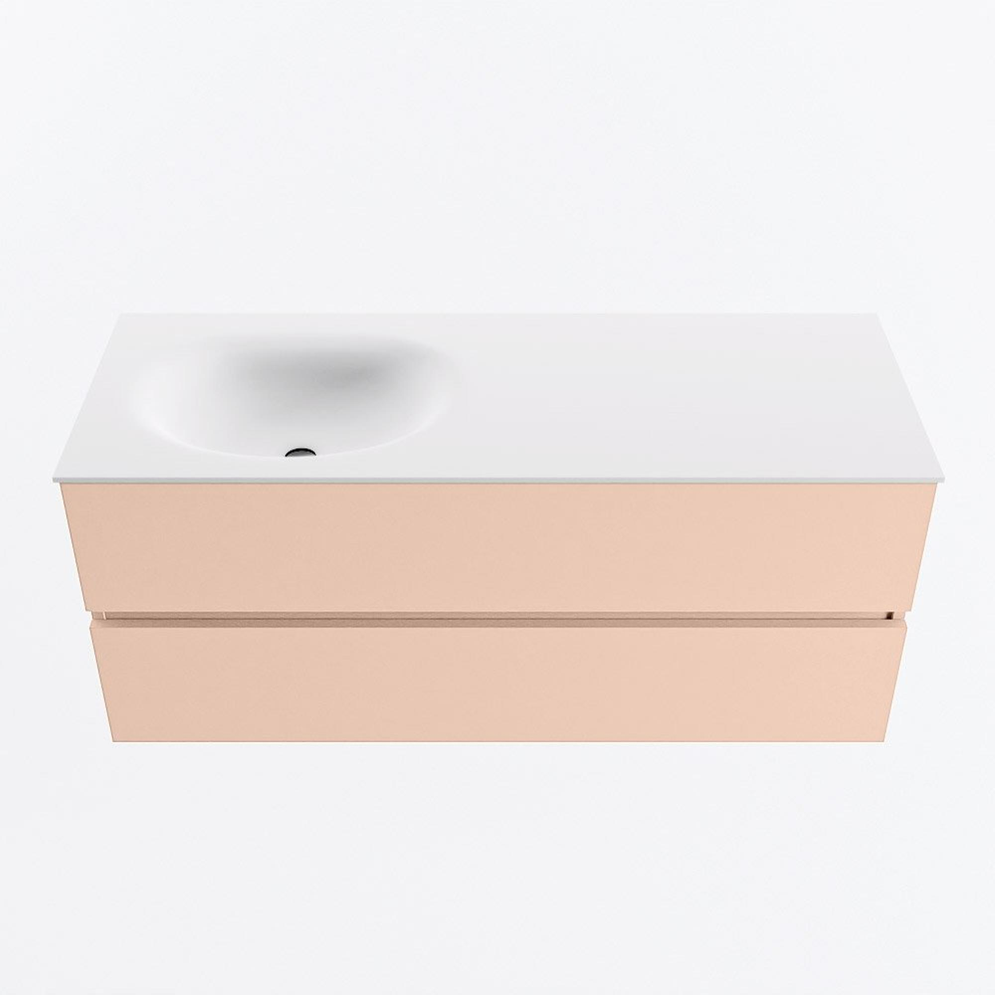 MONDIAZ VICA Badkamermeubelset - 120cm - onderkast rosee- 2 lades - wastafel moon links - zonder kraangaten - 60cm hoge versie - talc