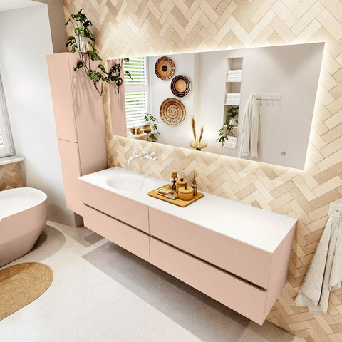 MONDIAZ Vica Badkamermeubelset - 180cm - onderkast rosee - 4 lades - wastafel moon links - zonder kraangaten - 60cm hoge versie - talc