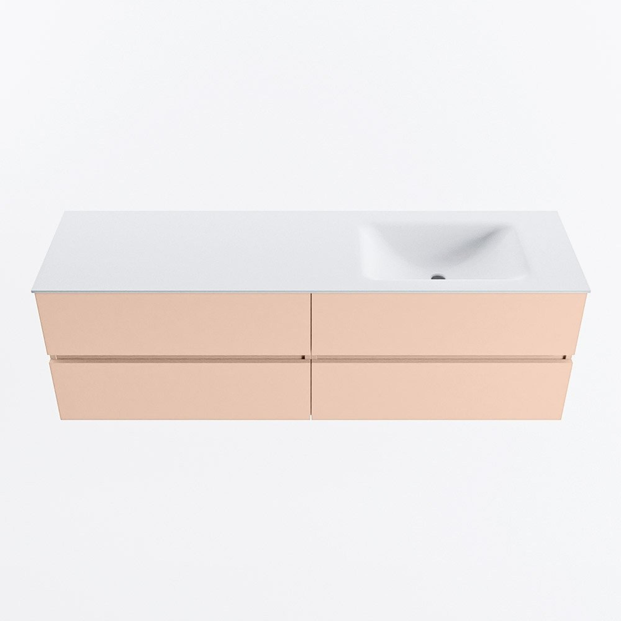 MONDIAZ Vica Badkamermeubelset - 160cm - onderkast rosee - 4 lades - wastafel cloud rechts - zonder kraangaten - 60cm hoge versie - talc