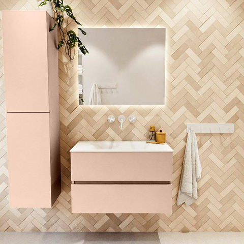 MONDIAZ VICA Badkamermeubelset - 80cm - onderkast rosee- 2 lades - wastafel cloud midden - zonder kraangaten - 60cm hoge versie - talc