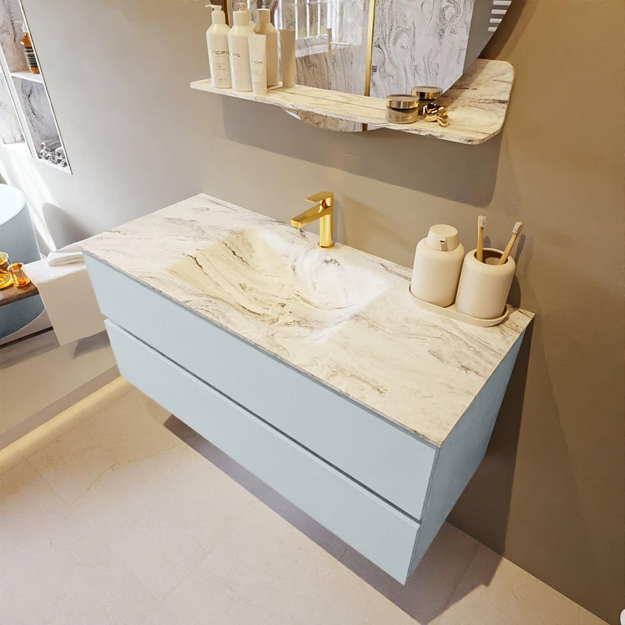 MONDIAZ VICA-DLUX Badkamermeubelset - 110cm - onderkast clay- 2 lades - inbouw wastafel cloud midden - 1 kraangat - 60cm hoge versie - glace