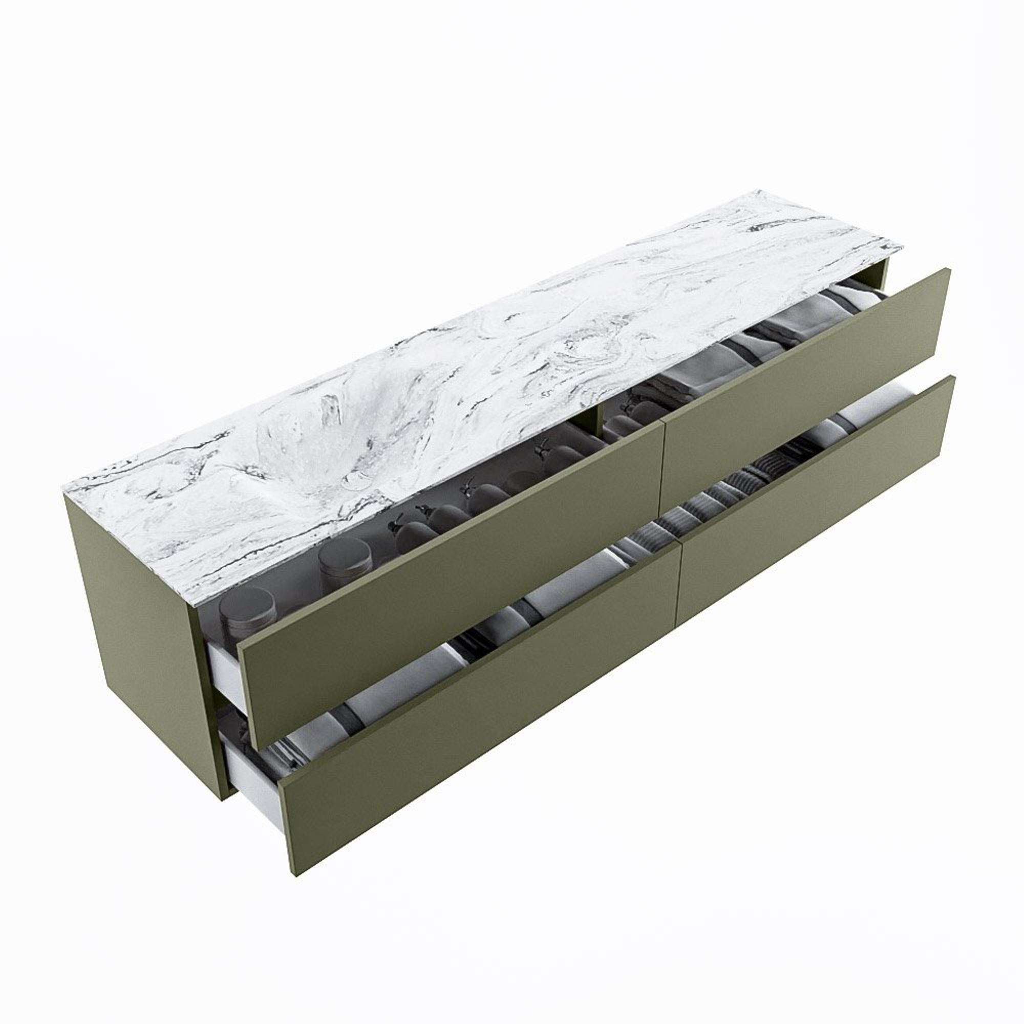 MONDIAZ VICA-DLUX Badkamermeubelset - 200cm - onderkast army - 4 lades - inbouw wastafel cloud links - 1 kraangat - 60cm hoge versie - glace