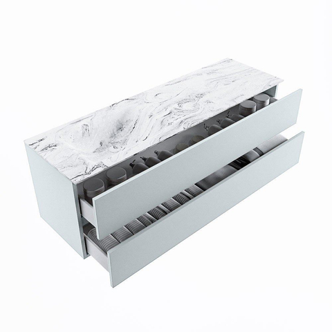 MONDIAZ VICA-DLUX Badkamermeubelset - 150cm - onderkast clay- 2 lades - inbouw wastafel cloud links - 1 kraangat - 60cm hoge versie - glace