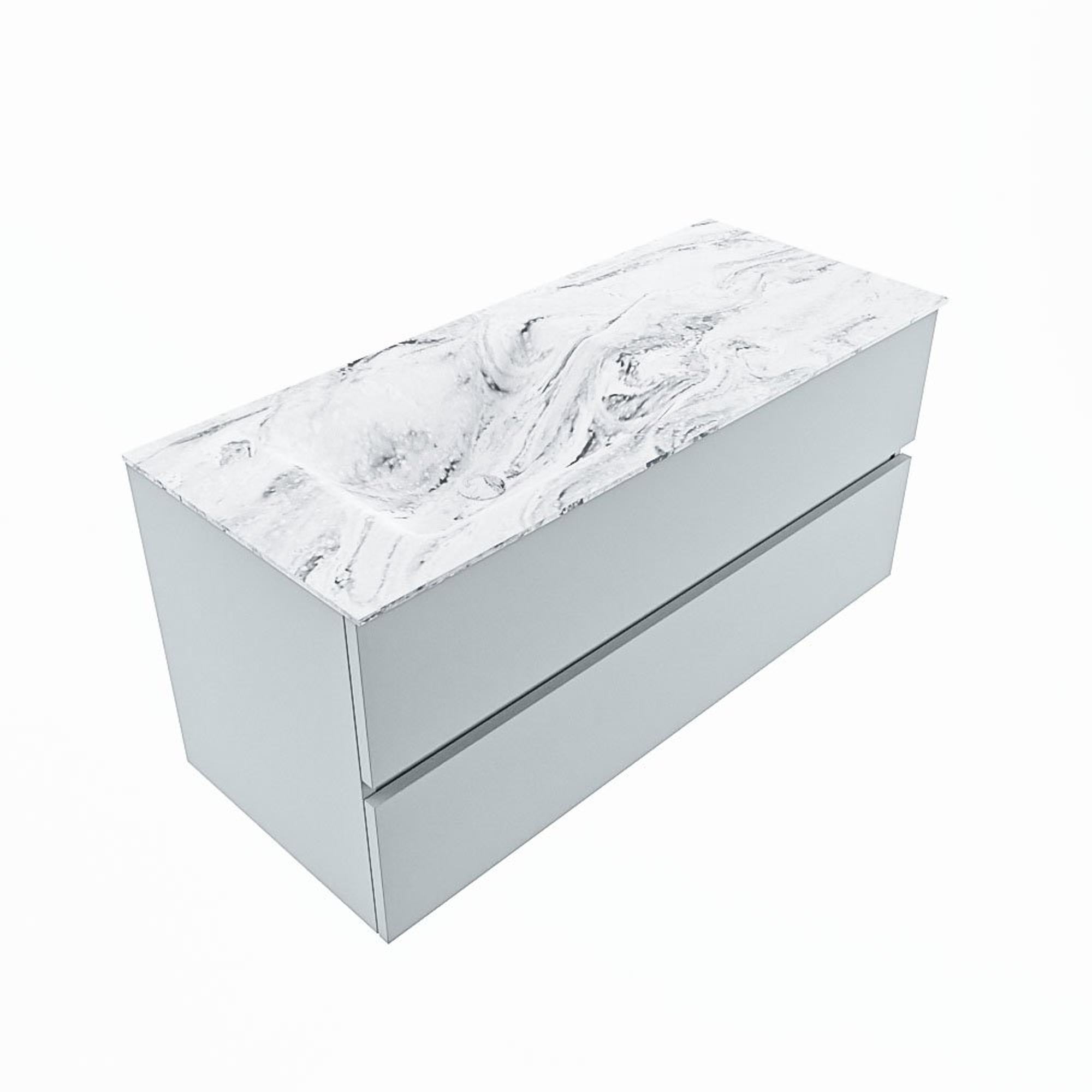 De buitengewone mooie badmeubel set VICA DLUX is een schitterend pronkstuk in uw badkamer. De gemarmerde Solid surface wastafel van CORIAN heeft een fraaie en tijdloze uitstraling. Door de zachte en natuurlijke vorm van de wastafel, gecombineerd met de tijdloze en prachtige badmeubel onderkast past de VICA-DLUX goed bij de diverse stijlen badkamers. Om uw badkamer compleet te af te stijlen hebben wij ook de nissen en spiegelhouders in dezelfde kleur als de wastafel. Zoals de Mondiaz nissen en spiegel planchetten. De serie VICA DLUX bestaat uit de 2 of 4 laden onderkast VICA gecombineerd met een CORIAN Solid surface wastafel met marmer structuur. De Solid surface CORIAN wastafel is in 5 marmer looks verkrijgbaar. Met deze badkamermeubel set heeft u wel die mooie marmeren uitstraling maar tevens ook het gemak en de hygiëne van Solid surface. Let op: U ziet bij de XL (60cm) variant de afbeeldingen/video's van de standaard hoogte (50cm)