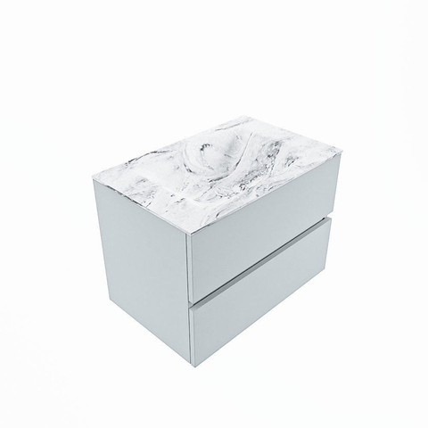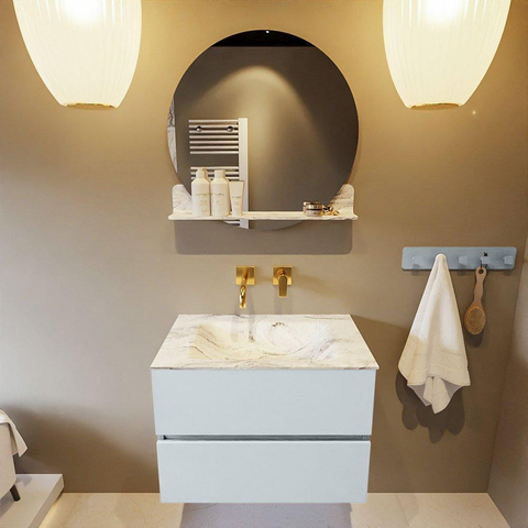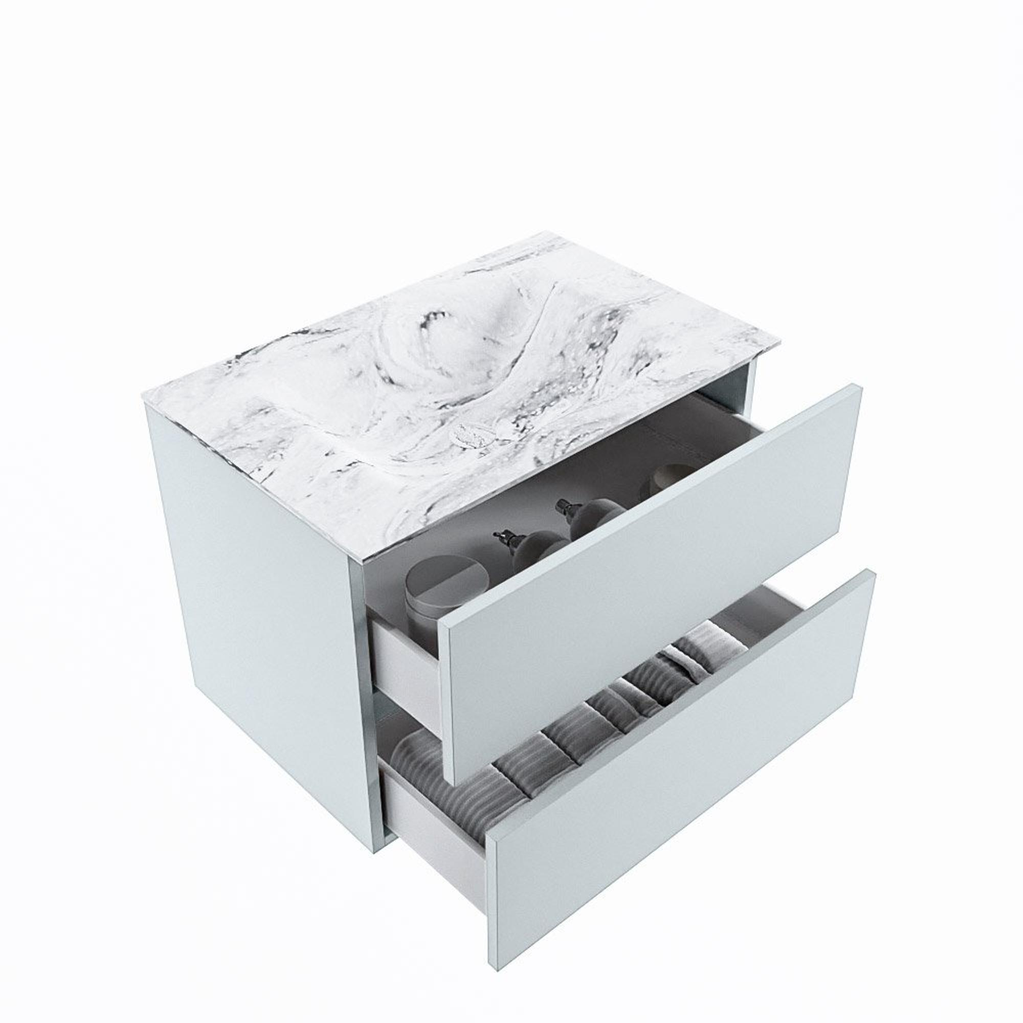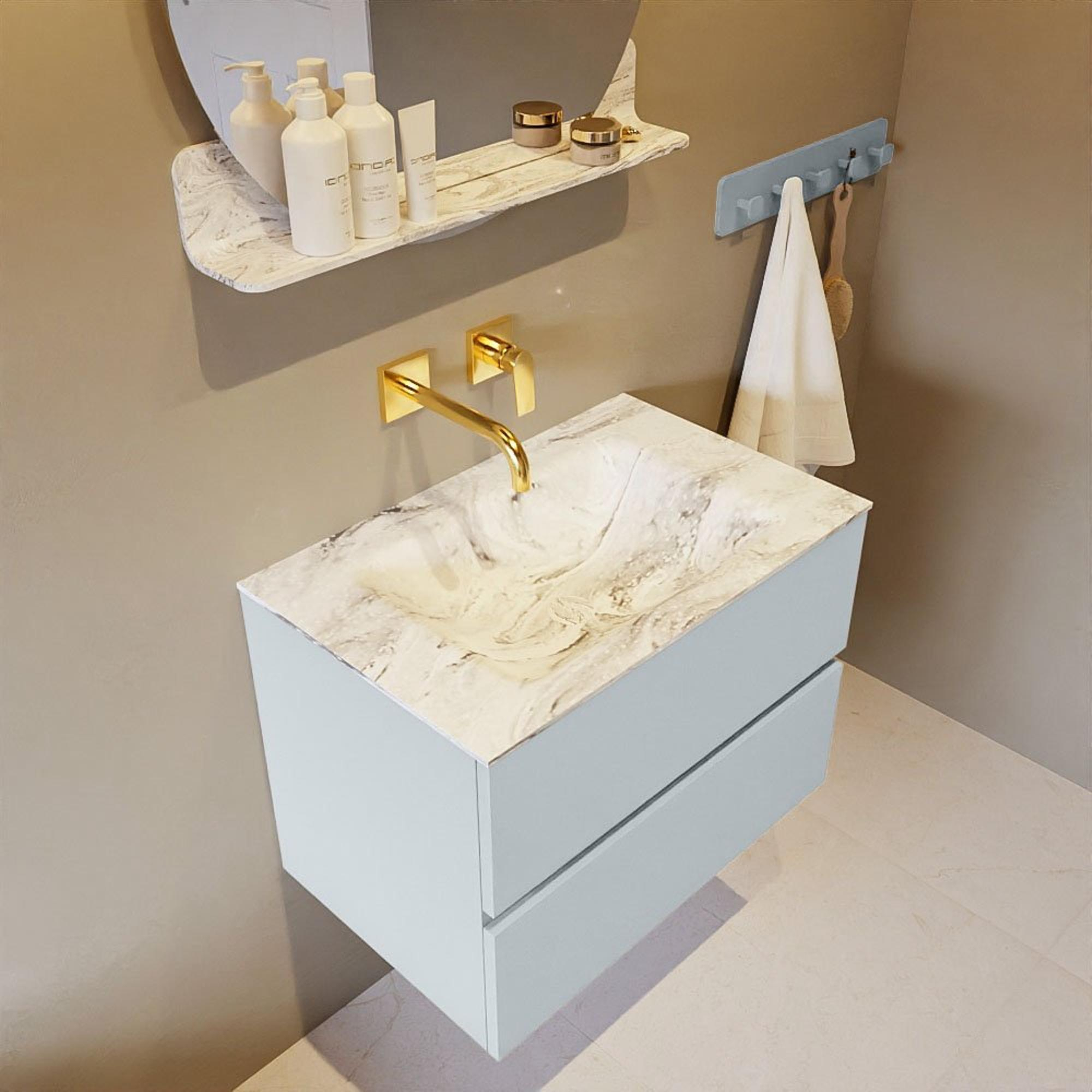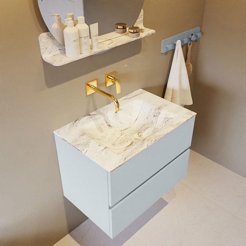MONDIAZ VICA-DLUX Badkamermeubelset - 70cm - onderkast clay- 2 lades - inbouw wastafel cloud midden - zonder kraangaten - 60cm hoge versie - glace