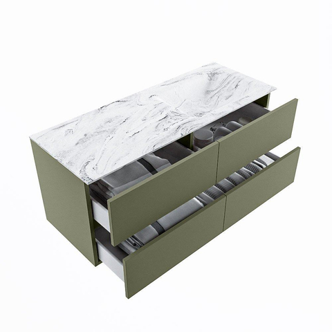 MONDIAZ VICA-DLUX Badkamermeubelset - 120cm - onderkast army - 4 lades - inbouw wastafel cloud rechts - zonder kraangaten - 60cm hoge versie - glace