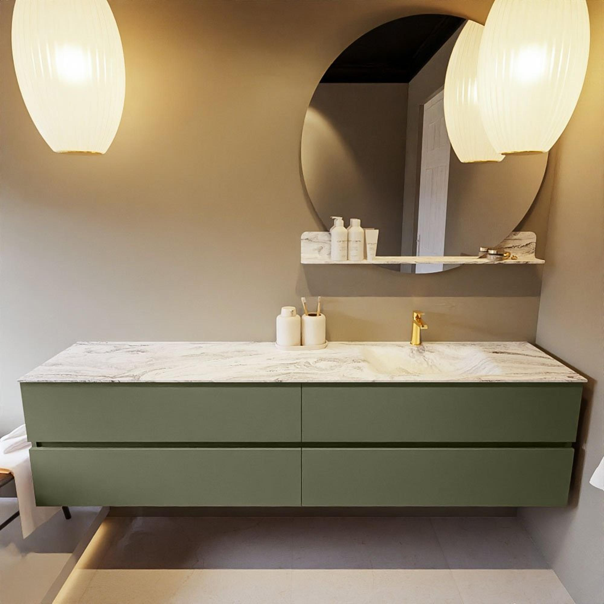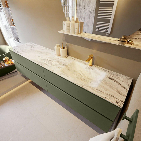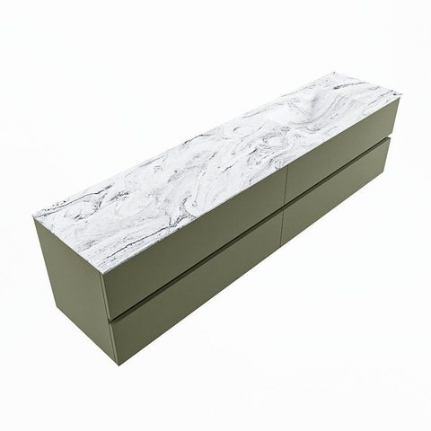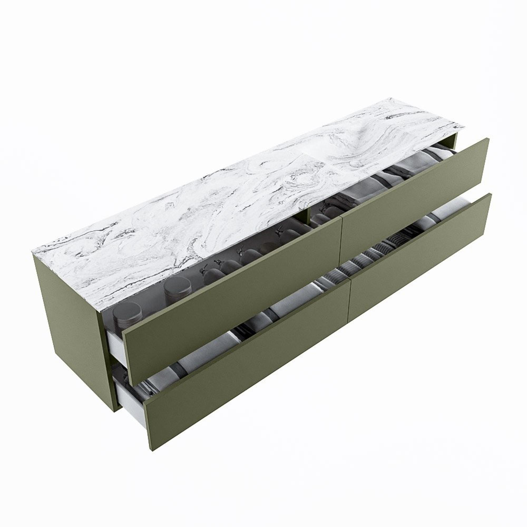 MONDIAZ VICA-DLUX Badkamermeubelset - 200cm - onderkast army - 4 lades - inbouw wastafel cloud rechts - 1 kraangat - 60cm hoge versie - glace