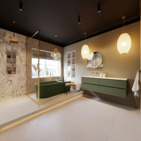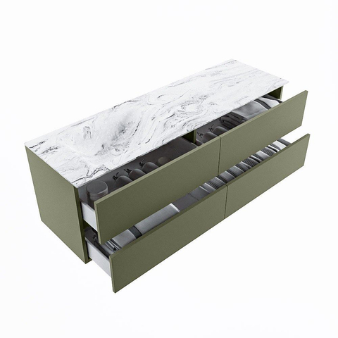 MONDIAZ VICA-DLUX Badkamermeubelset - 150cm - onderkast army - 4 lades - inbouw wastafel cloud links - zonder kraangaten - 60cm hoge versie - glace