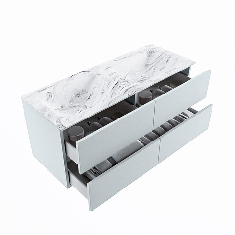 MONDIAZ VICA-DLUX Badkamermeubelset - 120cm - onderkast clay - 4 lades - inbouw wastafel cloud dubbel - 2 kraangaten - 60cm hoge versie - glace