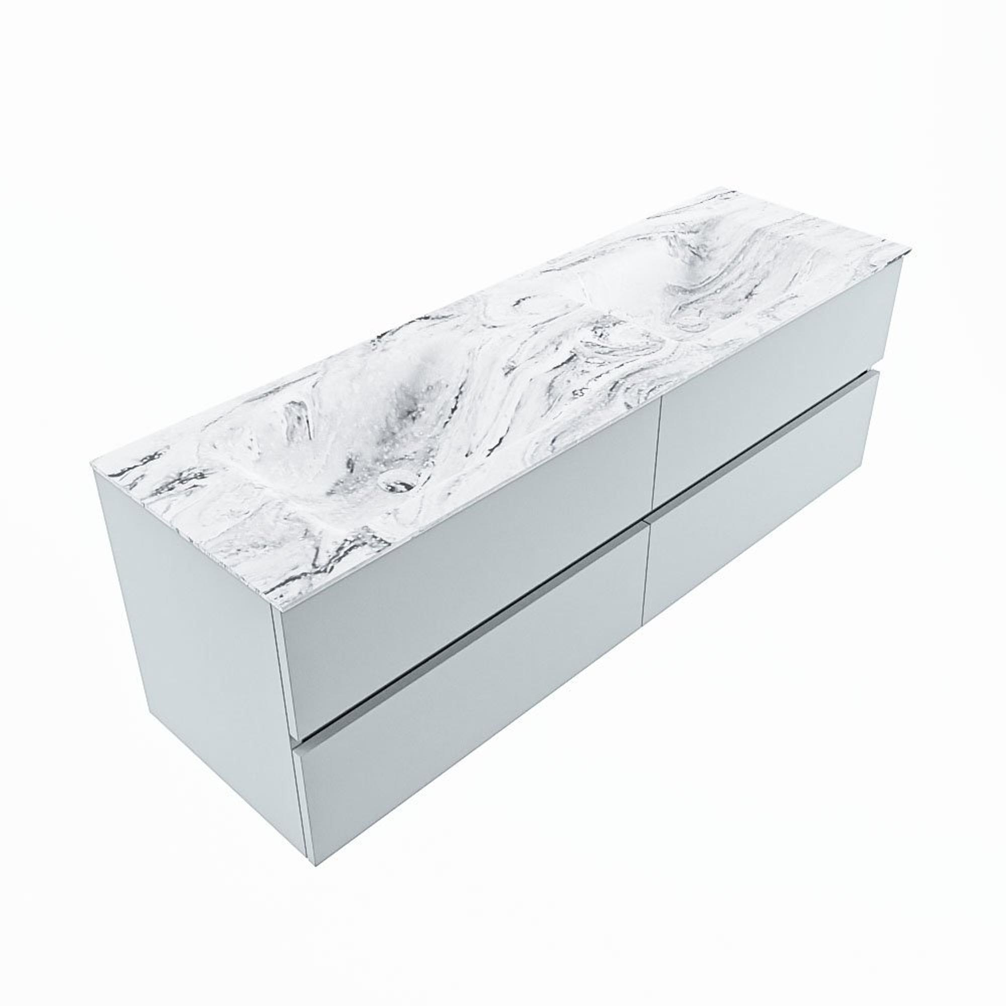 De buitengewone mooie badmeubel set VICA DLUX is een schitterend pronkstuk in uw badkamer. De gemarmerde Solid surface wastafel van CORIAN heeft een fraaie en tijdloze uitstraling. Door de zachte en natuurlijke vorm van de wastafel, gecombineerd met de tijdloze en prachtige badmeubel onderkast past de VICA-DLUX goed bij de diverse stijlen badkamers. Om uw badkamer compleet te af te stijlen hebben wij ook de nissen en spiegelhouders in dezelfde kleur als de wastafel. Zoals de Mondiaz nissen en spiegel planchetten. De serie VICA DLUX bestaat uit de 2 of 4 laden onderkast VICA gecombineerd met een CORIAN Solid surface wastafel met marmer structuur. De Solid surface CORIAN wastafel is in 5 marmer looks verkrijgbaar. Met deze badkamermeubel set heeft u wel die mooie marmeren uitstraling maar tevens ook het gemak en de hygiëne van Solid surface. Let op: U ziet bij de XL (60cm) variant de afbeeldingen/video's van de standaard hoogte (50cm)
