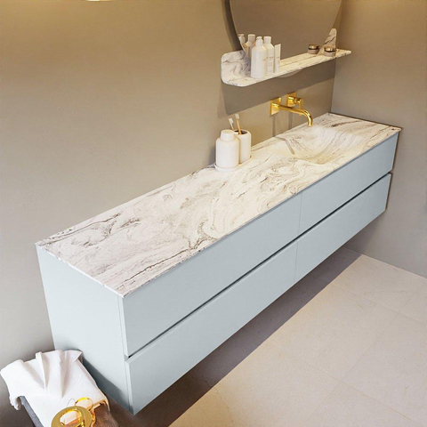 MONDIAZ VICA-DLUX Badkamermeubelset - 200cm - onderkast clay - 4 lades - inbouw wastafel cloud rechts - zonder kraangaten - 60cm hoge versie - glace