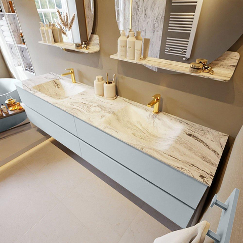 MONDIAZ VICA-DLUX Badkamermeubelset - 200cm - onderkast clay - 4 lades - inbouw wastafel cloud dubbel - 2 kraangaten - 60cm hoge versie - glace