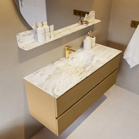 MONDIAZ VICA-DLUX Badkamermeubelset - 120cm - onderkast oro- 2 lades - inbouw wastafel cloud midden - 1 kraangat - 60cm hoge versie - glace