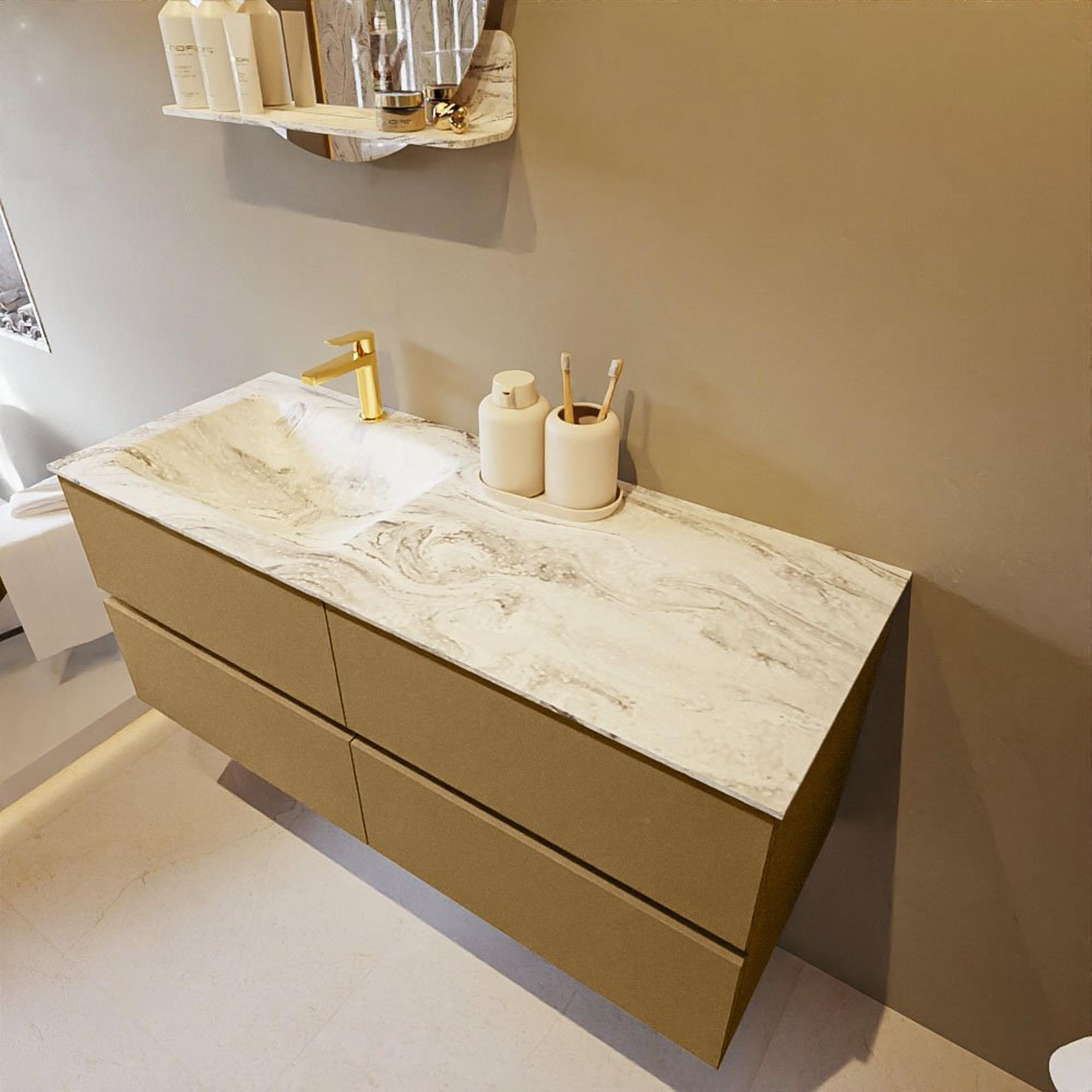 MONDIAZ VICA-DLUX Badkamermeubelset - 120cm - onderkast oro - 4 lades - inbouw wastafel cloud links - 1 kraangat - 60cm hoge versie - glace