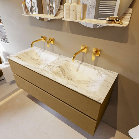 MONDIAZ VICA-DLUX Badkamermeubelset - 130cm - onderkast oro- 2 lades - inbouw wastafel cloud dubbel - zonder kraangaten - 60cm hoge versie - glace
