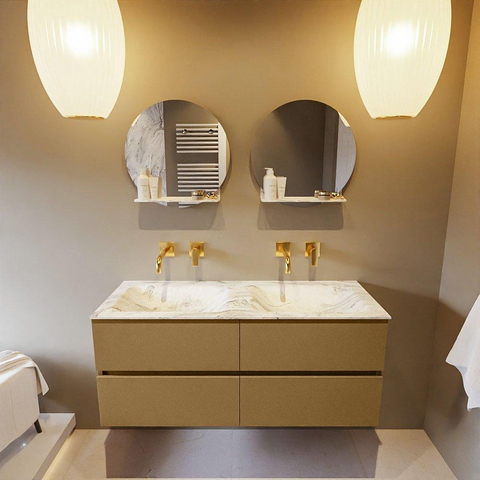 MONDIAZ VICA-DLUX Badkamermeubelset - 120cm - onderkast oro - 4 lades - inbouw wastafel cloud dubbel - zonder kraangaten - 60cm hoge versie - glace