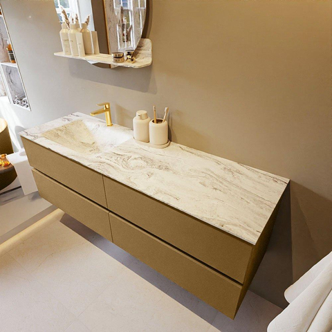 MONDIAZ VICA-DLUX Badkamermeubelset - 150cm - onderkast oro - 4 lades - inbouw wastafel cloud links - 1 kraangat - 60cm hoge versie - glace