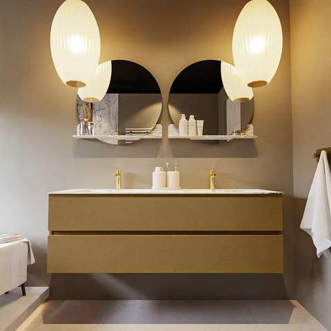 MONDIAZ VICA-DLUX Badkamermeubelset - 150cm - onderkast oro- 2 lades - inbouw wastafel cloud dubbel - 2 kraangaten - 60cm hoge versie - glace