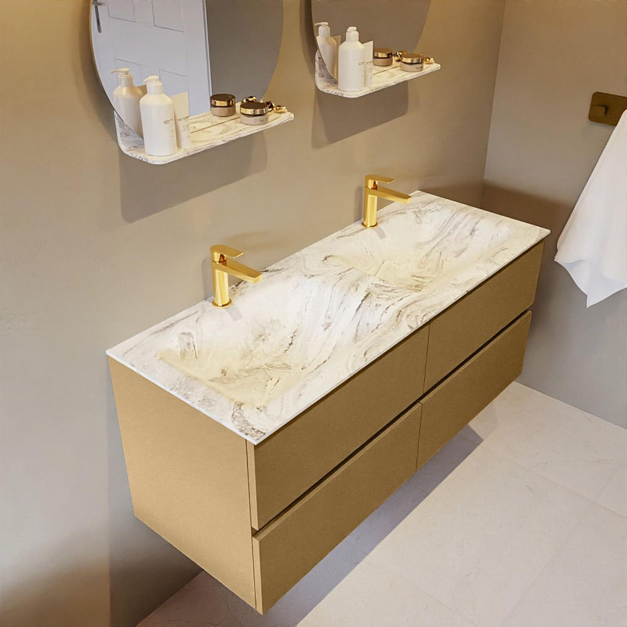 MONDIAZ VICA-DLUX Badkamermeubelset - 120cm - onderkast oro - 4 lades - inbouw wastafel cloud dubbel - 2 kraangaten - 60cm hoge versie - glace