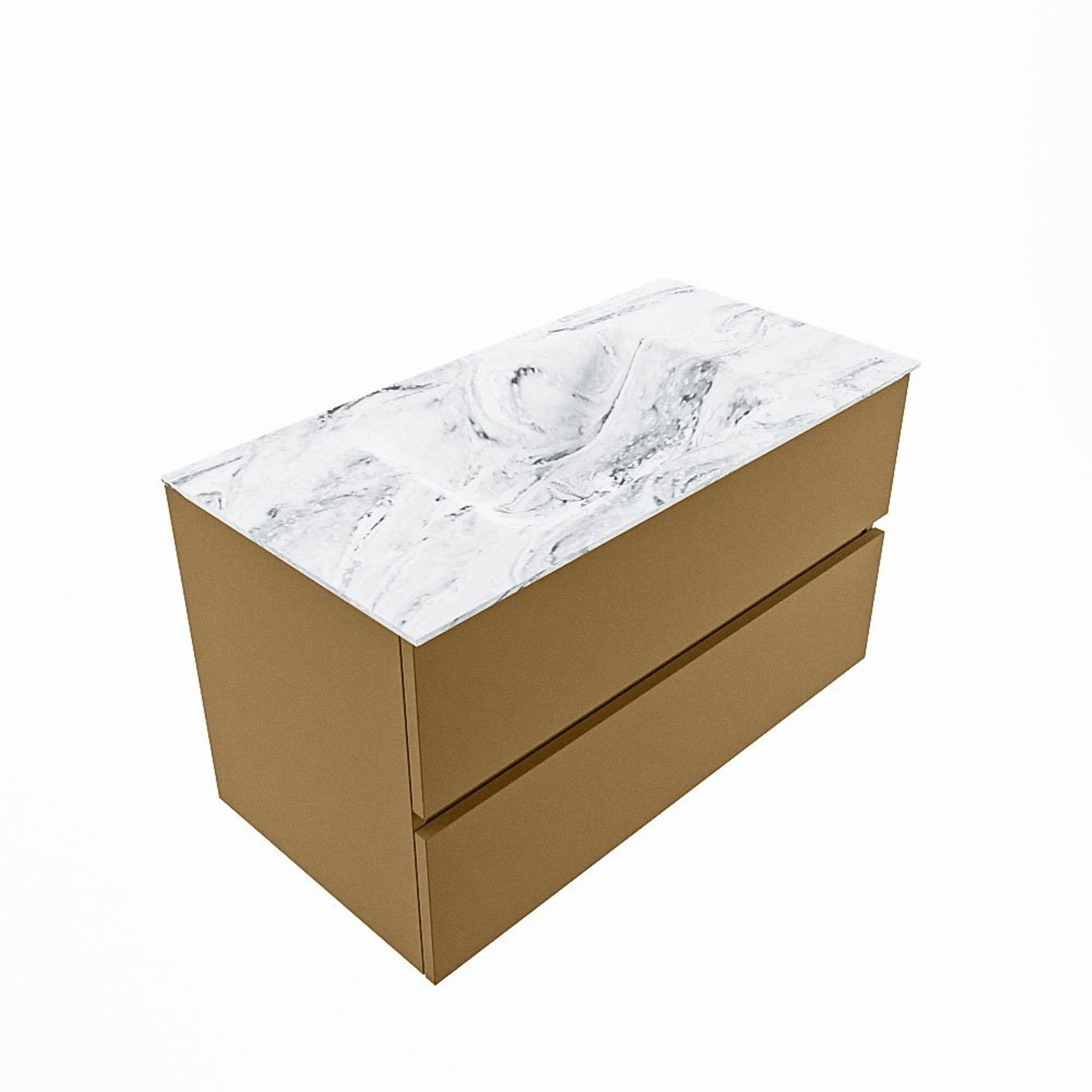 MONDIAZ VICA-DLUX Badkamermeubelset - 90cm - onderkast oro- 2 lades - inbouw wastafel cloud midden - zonder kraangaten - 60cm hoge versie - glace