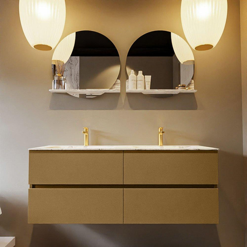 MONDIAZ VICA-DLUX Badkamermeubelset - 130cm - onderkast oro - 4 lades - inbouw wastafel cloud dubbel - 2 kraangaten - 60cm hoge versie - glace