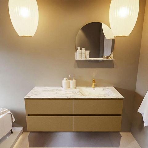 MONDIAZ VICA-DLUX Badkamermeubelset - 130cm - onderkast oro - 4 lades - inbouw wastafel cloud rechts - 1 kraangat - 60cm hoge versie - glace