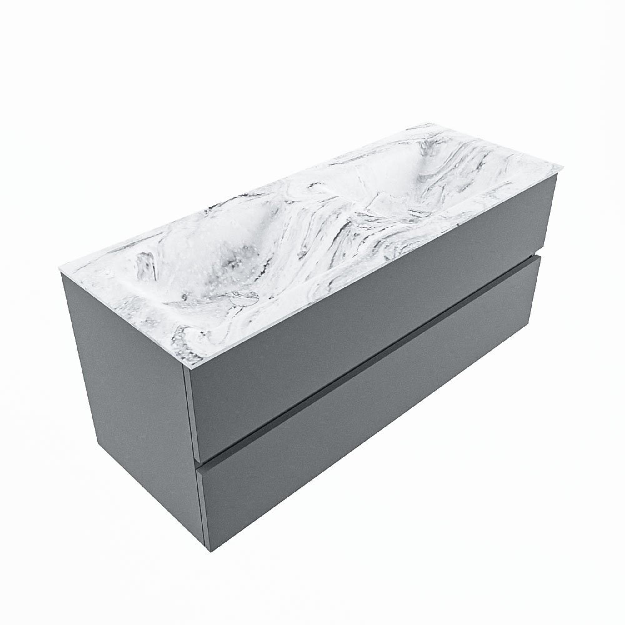 MONDIAZ VICA-DLUX Badkamermeubelset - 120cm - onderkast plata- 2 lades - inbouw wastafel cloud dubbel - zonder kraangaten - 60cm hoge versie - glace