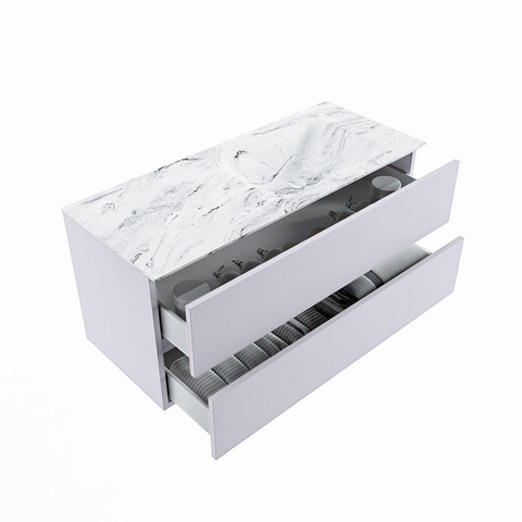 MONDIAZ VICA-DLUX Badkamermeubelset - 110cm - onderkast cale- 2 lades - inbouw wastafel cloud rechts - 1 kraangat - 60cm hoge versie - glace