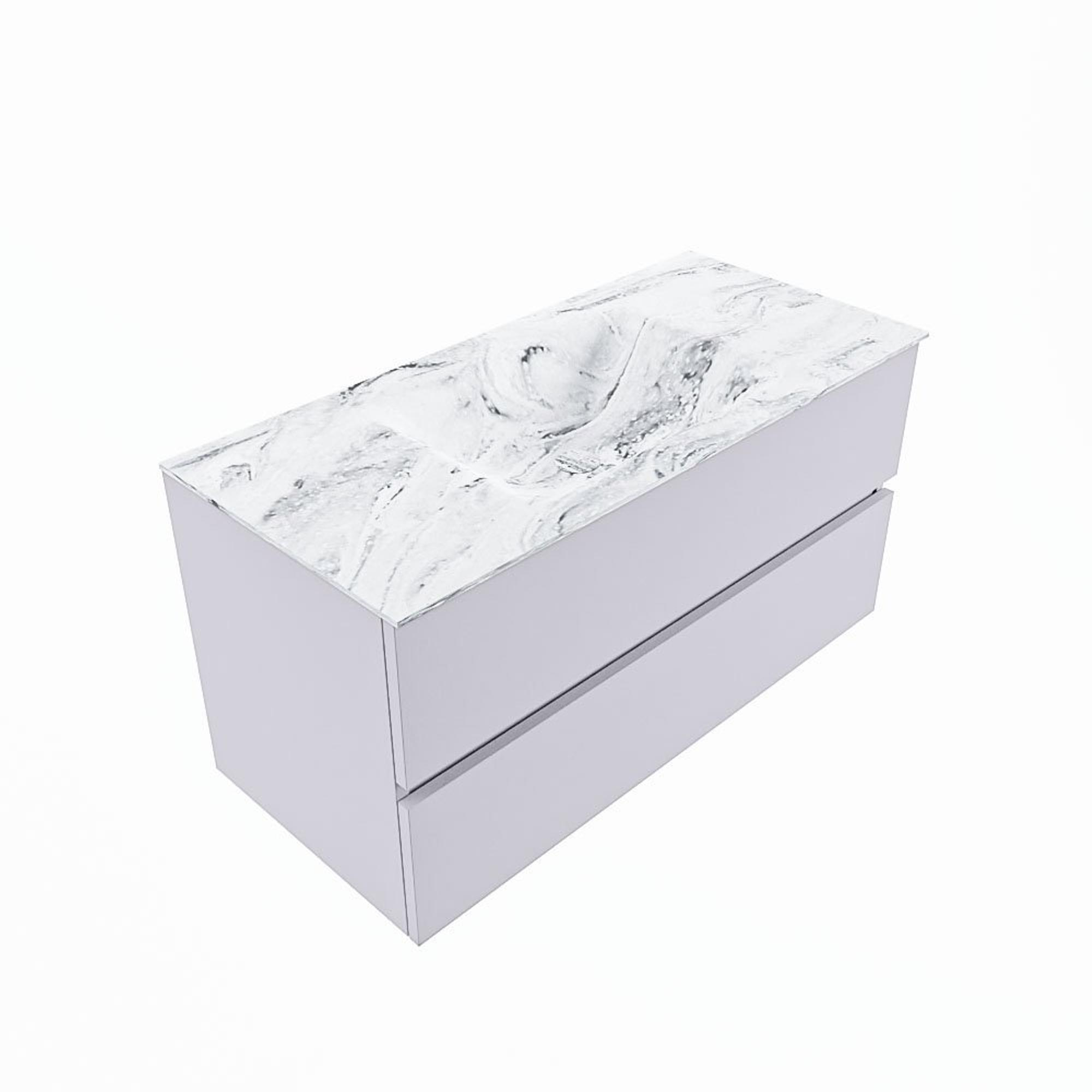 MONDIAZ VICA-DLUX Badkamermeubelset - 100cm - onderkast cale- 2 lades - inbouw wastafel cloud midden - zonder kraangaten - 60cm hoge versie - glace