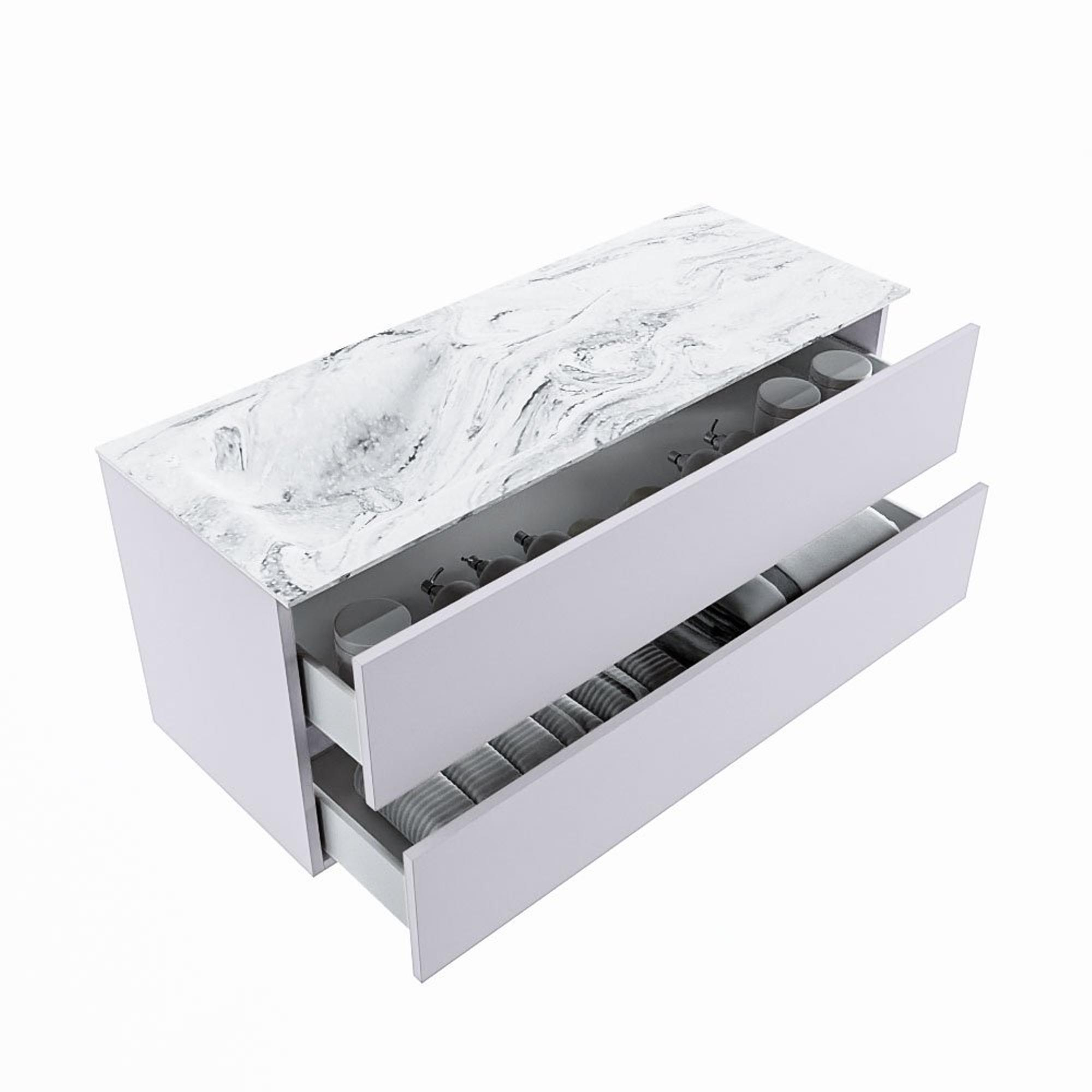MONDIAZ VICA-DLUX Badkamermeubelset - 120cm - onderkast cale- 2 lades - inbouw wastafel cloud links - 1 kraangat - 60cm hoge versie - glace