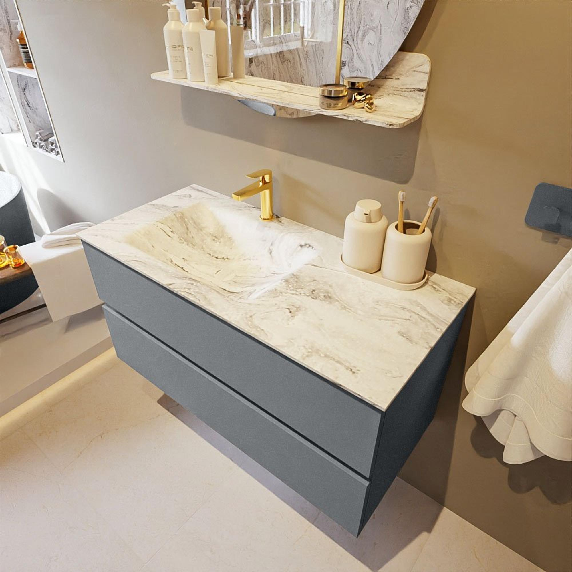 MONDIAZ VICA-DLUX Badkamermeubelset - 100cm - onderkast plata- 2 lades - inbouw wastafel cloud links - 1 kraangat - 60cm hoge versie - glace