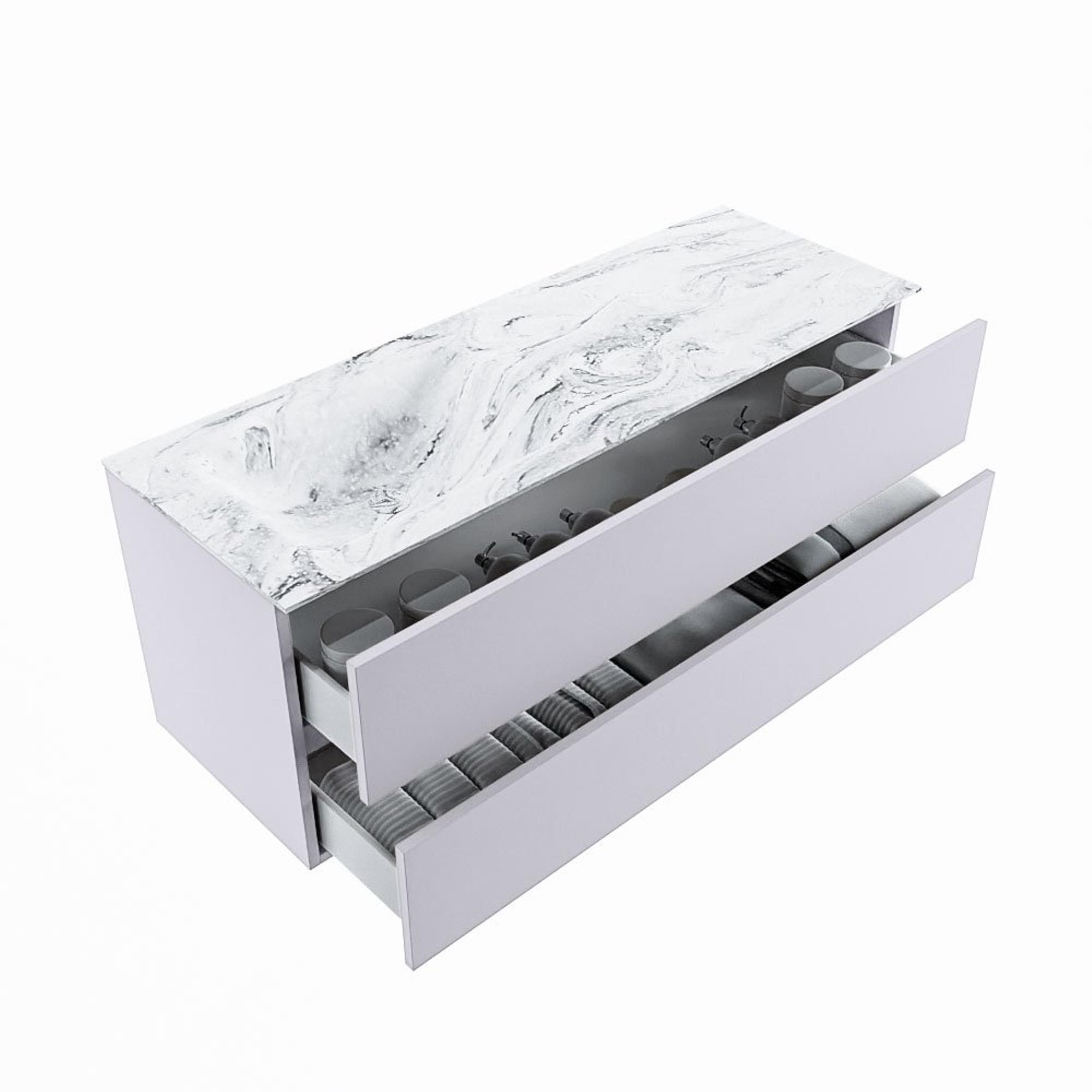MONDIAZ VICA-DLUX Badkamermeubelset - 130cm - onderkast cale- 2 lades - inbouw wastafel cloud links - zonder kraangaten - 60cm hoge versie - glace