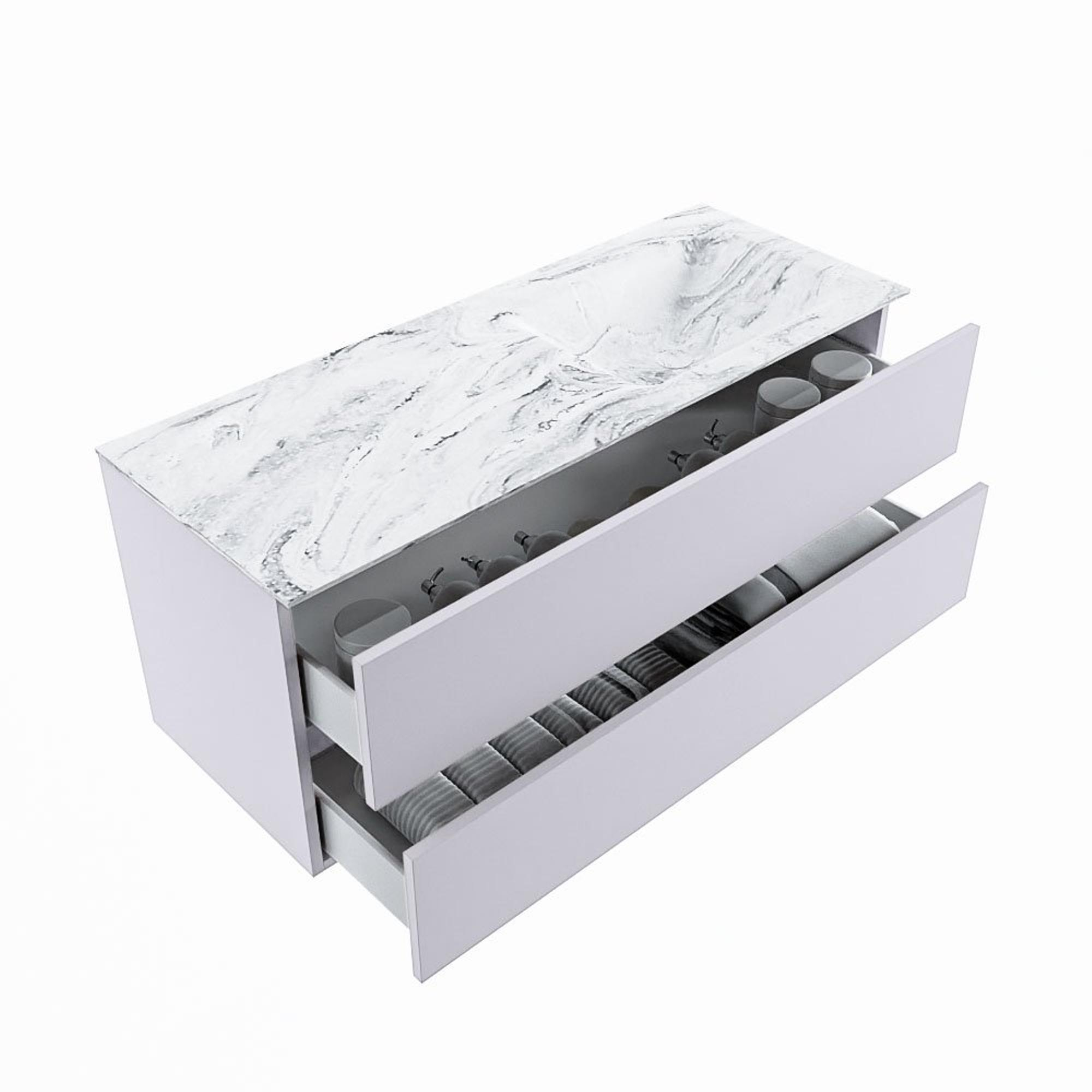 MONDIAZ VICA-DLUX Badkamermeubelset - 120cm - onderkast cale- 2 lades - inbouw wastafel cloud rechts - 1 kraangat - 60cm hoge versie - glace